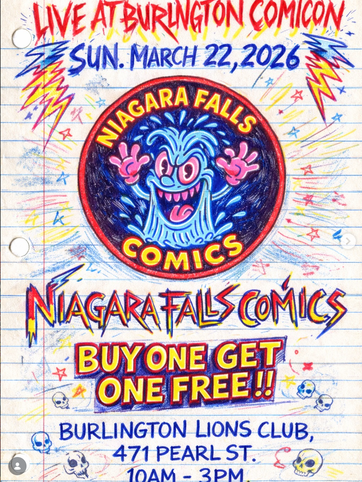 🎪 Niagara Falls Comics LIVE at Burlington Comicon — Sunday March 22 • 10AM–3PM • Burlington Lions Club • Buy One Get One Free Comics!